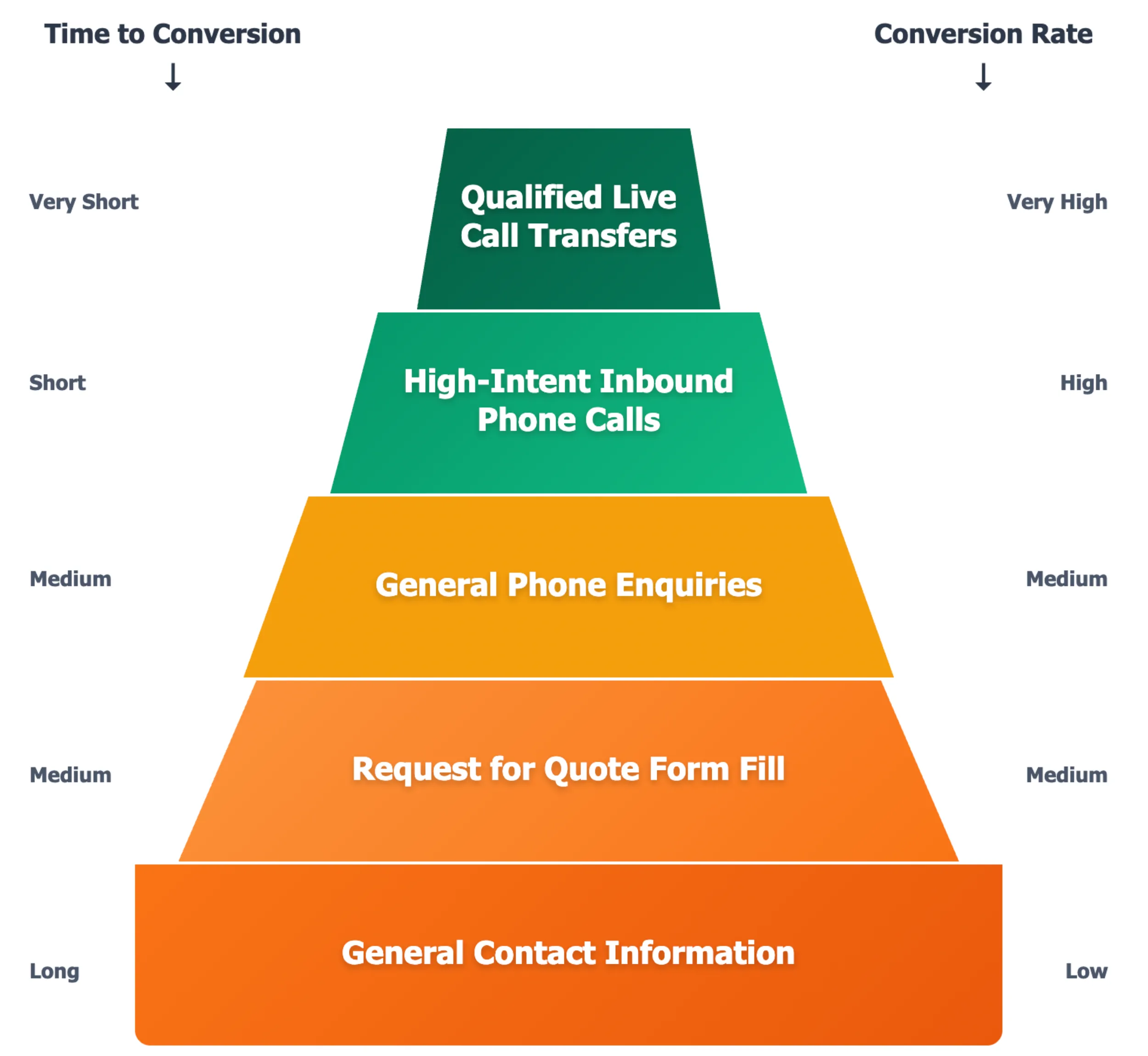 A live call transfer is when we have qualified in real time the prospect and transferred them on the same call to your sales team for conversion. This handover provides the highest quality 'hot prospects' you can receive because they're on the phone live and ready to book.